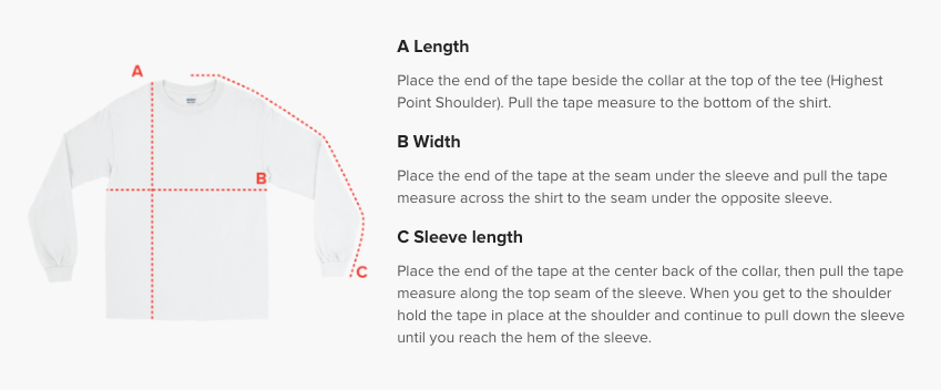 Pro tip! Measure one of your longsleeves at home and compare with the measurements you see in this guide. Find the measuring guide in the pictures!